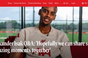體育資訊9月2日訊 利物浦已經(jīng)官宣引進(jìn)紐卡中鋒伊薩克,后者也接受了俱樂(lè)部官網(wǎng)的問(wèn)答采訪(fǎng)。
