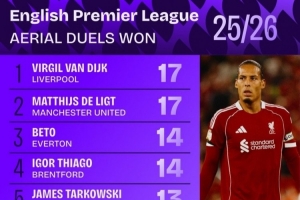 體育資訊9月3日訊 數(shù)據(jù)機(jī)構(gòu)squakwa統(tǒng)計(jì)了新賽季英超球員解圍情況,兩位荷蘭中衛(wèi)并列榜首。