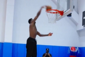 視頻中馬瑟林赤裸著上身進行有球訓練,他的打板大戰(zhàn)斧劈扣讓人賞心悅目,節(jié)奏變化下的跳投也是把握十足。