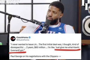 他當時說:“我從未想過離開洛杉磯。他們最開始給我的合同,我想那有些不尊重人,2年6000萬。我說,‘給我萊昂納德得到東西?!?/p>