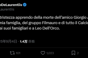 體育資訊9月4日訊 意大利時裝設(shè)計師、奢侈品牌阿瑪尼創(chuàng)始人喬治-阿瑪尼離世,那不勒斯主席德勞倫蒂斯通過社交媒體進(jìn)行了悼念。