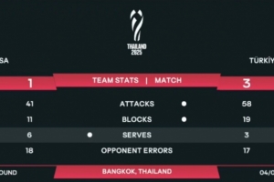 體育資訊9月4日訊 2025年女排世錦賽上半?yún)^(qū)1/4決賽,土耳其女排3-1(25-14 22-25 25-14 25-23)戰(zhàn)勝美國女排,土耳其女排晉級世錦賽四強,半決賽將對陣日本女排,美國女排無緣半決賽止步八強。