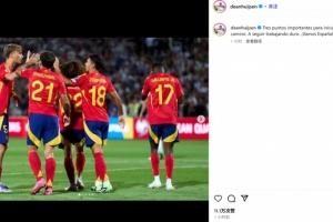 他也在賽后通過社媒曬出和隊(duì)友們慶祝的合照,并配文:“開啟我們(世預(yù)賽)旅程的關(guān)鍵3分。讓我們繼續(xù)努力。西班牙加油!”