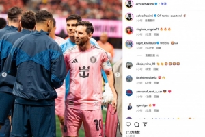 體育資訊6月30日訊 巴黎在世俱杯16強戰(zhàn)4-0淘汰邁阿密國際,邊后衛(wèi)阿什拉夫在賽后通過社媒曬照紀念。