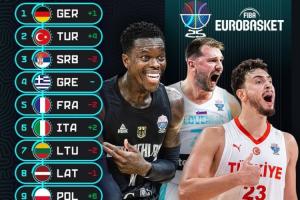 男籃歐錦賽小組賽階段結(jié)束,F(xiàn)IBA官方給出了最新的實力榜,詳情如下: