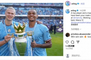 哈蘭德寫道:“一位頂級球員,也是頂級的好兄弟!很自豪曾在多特蒙德和曼城與你并肩作戰(zhàn)。祝你一切順利,Manu!”