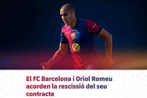 巴塞羅那足球俱樂(lè)部感謝奧里奧爾-羅梅烏展現(xiàn)出的職業(yè)精神、奉獻(xiàn)態(tài)度與全心投入,并祝愿他未來(lái)好運(yùn)相伴、一切順利。
