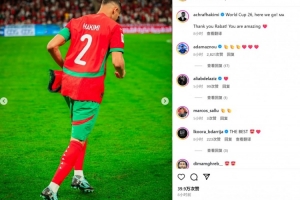 隊(duì)長(zhǎng)阿什拉夫也在賽后通過(guò)社媒曬出比賽照,并配文:“26年世界杯我們來(lái)了!感謝拉巴特,你們太熱情了!”