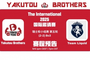 體育資訊9月6日訊 TI14瑞士輪今天繼續(xù)進行!2-2輪次中,中國隊Yakutou Brothers對上Liquid!