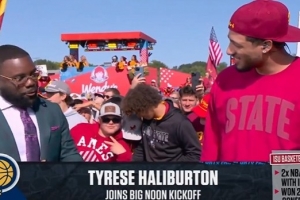 體育資訊9月7日訊 今日步行者球星哈利伯頓做客直播節(jié)目《BIG NOON KICKOFF》。