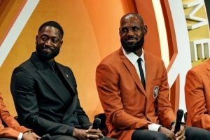 熱火官推曬出了此次一同入選名人堂的球隊(duì)名宿韋德、詹姆斯、波什在名人堂現(xiàn)場(chǎng)的合影,并寫道:“那支08年奧運(yùn)會(huì)的球隊(duì)很特別?!?/p>