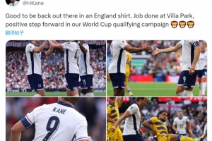 英格蘭隊(duì)長凱恩更新社媒動(dòng)態(tài),曬出比賽照片,配文:“很高興再次身穿英格蘭隊(duì)球衣出戰(zhàn),在維拉公園完成了任務(wù),這是我們在世界杯預(yù)選賽征程中向前邁出的積極一步。”