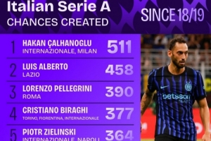 體育資訊9月7日訊 《轉(zhuǎn)會市場》統(tǒng)計(jì)了18-19賽季以來的意甲創(chuàng)造機(jī)會情況,恰爾汗奧盧獨(dú)自領(lǐng)跑。