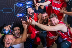 這是格魯吉亞男籃歷史首次打進(jìn)歐錦賽八強(qiáng)。賽后的格魯吉亞眾將在晉級墻前興奮合影。