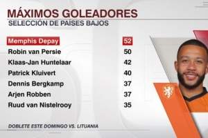 體育資訊9月8日訊 荷蘭在本輪世預(yù)賽3-2力克立陶宛,德佩梅開二度,并登頂荷蘭隊(duì)史射手王。