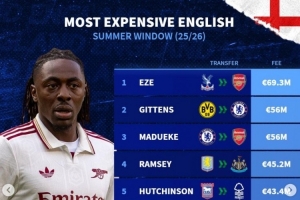 體育資訊9月8日訊 今夏主流聯(lián)賽轉(zhuǎn)會窗已經(jīng)關(guān)閉,《轉(zhuǎn)會市場》也列出了英格蘭球員的今夏轉(zhuǎn)會費(fèi)最貴情況。