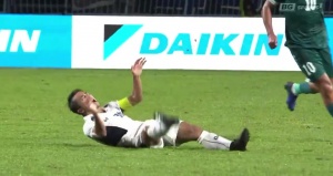 全場比賽補(bǔ)時階段,伊拉克1-0領(lǐng)先泰國。此前有“泰國梅西”之稱的泰國隊(duì)球員頌克拉辛中圈帶球突破,被身后的伊拉克十號莫哈納德-阿里一腳踢在懸空的左腿膝蓋處,頌克拉辛當(dāng)場痛苦倒地并翻滾數(shù)圈!