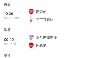阿森納聯(lián)賽下輪正好將主場(chǎng)對(duì)陣諾丁漢森林,且將在后面的歐冠首輪對(duì)陣畢爾巴鄂競(jìng)技。