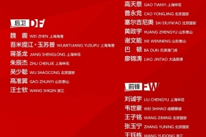 山東泰山足球俱樂(lè)部:黃政宇、謝文能、于金永、高準(zhǔn)翼(4人)