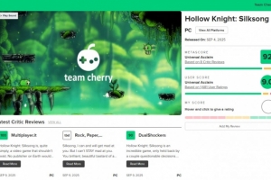 體育資訊9月10日訊 今日《空洞騎士絲之歌》在Metacritic網(wǎng)站的媒體評分已解禁,目前媒體平均分為92分(PC版),共有9家媒體參與評分,其中好評7條,中評1條。