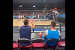 體育資訊9月10日訊 斯洛文尼亞男籃將在明天凌晨2點(diǎn)對(duì)陣德國(guó)男籃,斯洛文尼亞男籃官方社媒曬出了一個(gè)東契奇坐在替補(bǔ)席命中超遠(yuǎn)三分的視頻,這手感真是無(wú)敵。