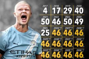 哈蘭德現(xiàn)年25歲,到2040年他就將年滿40歲,不過2025年還有半年時間,哈蘭德在今年還能多多斬獲進球。目前40歲的C羅職業(yè)生涯進球數(shù)為943球。