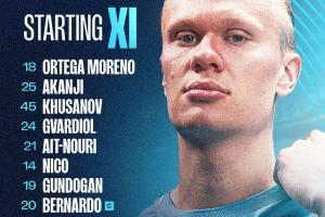 曼城替補:31-埃德森、13-貝蒂內(nèi)利、3-迪亞斯、5-斯通斯、6-阿克、22-雷斯、4-賴因德斯、16-羅德里、11-多庫、26-薩維尼奧、29-謝爾基、47-福登、75-奧賴?yán)?2-鮑勃、7-馬爾穆什