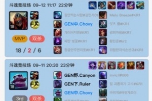 體育資訊9月12日訊 根據(jù)韓服排位統(tǒng)計(jì)小程序顯示,Chovy中午登上韓服打了一把斗魂競(jìng)技砍下MVP后美美下線。