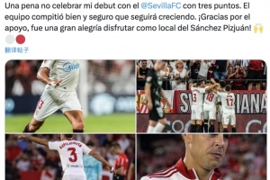 體育資訊9月13日訊 西甲第4輪塞維利亞主場(chǎng)2-2戰(zhàn)平埃爾切,本場(chǎng)比賽老將阿茲皮利奎塔首發(fā)登場(chǎng)完成加盟后的首秀,球員賽后更新社交媒體。