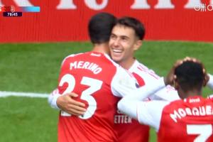 體育資訊09月13日訊 英超第4輪,阿森納vs諾丁漢森林。比賽第79分鐘,特羅薩德剛剛登場(chǎng)就送助攻,蘇維門迪頭球破門,本場(chǎng)雙響!阿森納3-0領(lǐng)先。