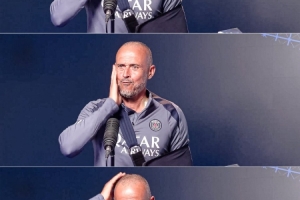 體育資訊9月13日訊 在巴黎的新聞發(fā)布會(huì)上,遭遇自行車事故的恩里克手打吊帶亮相。