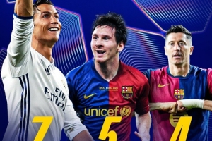 體育資訊9月14日訊 歐冠官方更新社媒動(dòng)態(tài),曬出C羅、梅西、萊萬的歐冠數(shù)據(jù)。