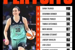 在比賽的上半場(chǎng),斯圖爾特超越了林賽-惠倫,以963分升至 WNBA 季后賽歷史得分榜第6位 。