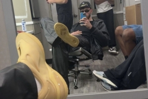 體育資訊9月15日訊 有網(wǎng)友曬出了一張雷霆球員霍姆格倫的對鏡自拍圖,照片中,霍姆格倫依靠在椅子上翹著腿,拍下了自己的球鞋特寫。