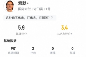 體育資訊7月1日訊 國米在世俱杯16強(qiáng)戰(zhàn)爆冷0-2不敵弗魯米嫩塞,索默本場數(shù)據(jù)如下: