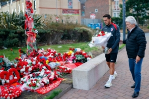塞雷佐和科克代表馬競俱樂部,為若塔獻(xiàn)上了一束紅白相間的鮮花。
