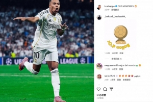 姆巴佩也在賽后曬出自己的慶祝照,并配文:“舊日的記憶?!?/p>