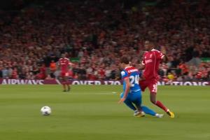 體育資訊09月18日訊 歐冠聯(lián)賽階段首輪,利物浦主場(chǎng)對(duì)陣馬競(jìng)。31分鐘,伊薩克分球后被勒諾爾芒踩到,痛苦倒地,緩了一會(huì)后伊薩克繼續(xù)比賽。