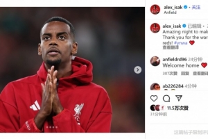 此役伊薩克首發(fā)出戰(zhàn),上演利物浦首秀,賽后他在社交媒體上寫(xiě)道:“在美妙的夜晚迎來(lái)我的首秀,感謝紅軍球迷們的熱情歡迎!ynwa??”