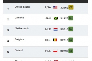 牙買加3分19秒25創(chuàng)賽季最佳獲得銀牌,荷蘭3分20秒18同樣創(chuàng)賽季最佳獲得銅牌。