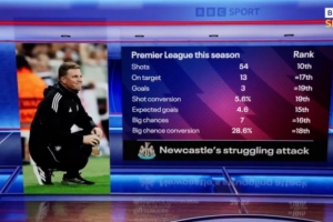 體育資訊9月22日訊 英超第5輪比賽,紐卡客場0-0戰(zhàn)平伯恩茅斯。據(jù)BBC統(tǒng)計,紐卡本賽季多項進(jìn)攻數(shù)據(jù)排名英超后幾位。