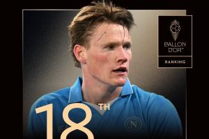 體育資訊9月23日訊 2025年金球獎排名陸續(xù)公布,28歲那不勒斯中場麥克托米奈排名第18位,生涯首次入圍。