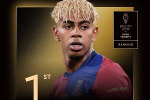 體育資訊9月23日訊 2025年金球獎(jiǎng)?lì)C獎(jiǎng)典禮今日進(jìn)行,18歲的西班牙前鋒亞馬爾獲得科帕獎(jiǎng),連續(xù)兩年獲得該獎(jiǎng)項(xiàng),巴薩球員5年4獲獎(jiǎng)。