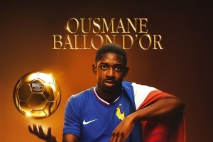 法國國家隊寫道:“奧斯曼(登貝萊)獲得金球獎,永遠載入法國史冊?!?/p>