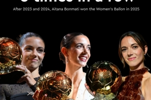 邦馬蒂成為女足金球獎歷史上最成功的球員,連續(xù)三次奪得金球獎,加入了克魯伊夫、普拉蒂尼和范巴斯滕等男足傳奇的行列。盡管她在個人表現上取得了巨大成功,但巴薩女足在歐冠決賽中失利以及西班牙女足國家隊在歐洲杯決賽中的失敗讓她感到遺憾。不過,她的出色表現使她成為了這兩項賽事的最佳球員。