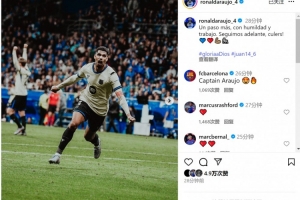 阿勞霍社媒曬照慶祝取勝,他寫(xiě)道:“又邁出一步,懷著謙遜與努力。我們繼續(xù)前進(jìn),巴薩球迷們!”