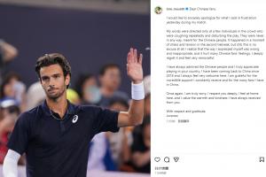 體育資訊09月27日訊 意大利選手穆塞蒂發(fā)布INS,向此前在中網(wǎng)比賽中吐槽觀眾咳嗽的失禮行為致歉。