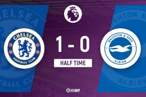 上半場傷停補(bǔ)時2分鐘,半場結(jié)束,切爾西暫1-0布萊頓。