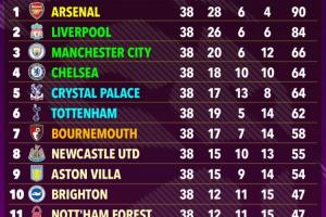 體育資訊09月29日訊 英超第6輪戰(zhàn)罷,超級(jí)計(jì)算機(jī)根據(jù)各支球隊(duì)的積分和表現(xiàn)情況,以及球隊(duì)的陣容,預(yù)測(cè)了本賽季英超的最終排名。阿森納將以90分奪得英超冠軍,利物浦84分第二,曼城、切爾西進(jìn)入前四,曼聯(lián)僅排名英超第15。