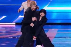 我真笑死,郭艾倫與王思雨臺上比賽,艾倫為了搶球一把推開了王思雨。